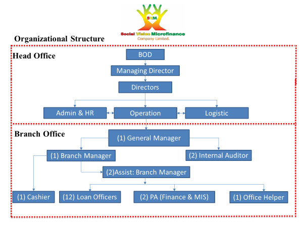 Following government requirements that NGOs engaged in microfinance must transition into registered companies, Social Vision Services applied for company registration with DICA in 2017. It was initially formed with both Organization and BOD shares. Later, in 2019, shareholding was restructured, making Social Vision Services the sole 100% shareholder of Social Vision Microfinance Co., Ltd.