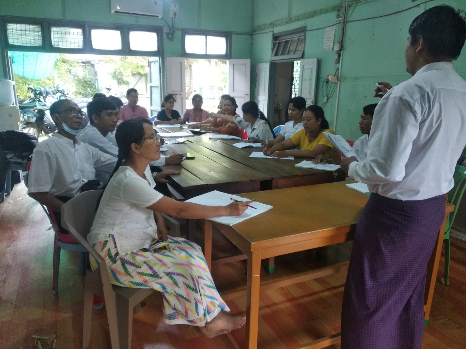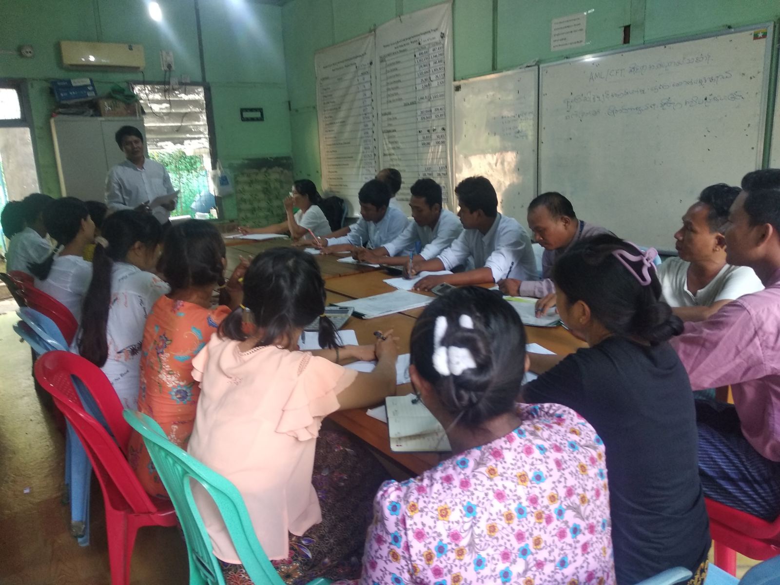 .Social Vision Microfinance Co., Ltd ဝမ်းတွင်းရုံးမှ ဝန်ထမ်းများအား ငွေကြေးခဝါချမှုနှင့်အကြမ်းဖက်မှုကို တိုက်ဖျက်ရေးဆိုင်ရာ အသိပညာပေးသင်တန်းပေးနေခြင်း