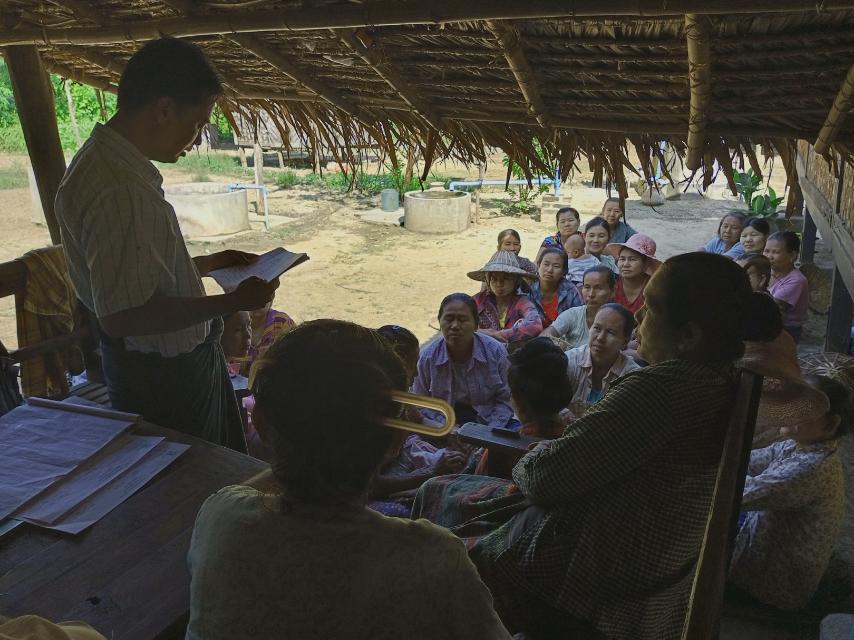 ၀မ်းတွင်းမြို့နယ် ဆူးပန်းကျေးရွာတွင် အသင်းသားအသစ်များအား ငွေကြေးစီမံခန့်ခွဲမှုဆိုင်ရာ အသိပညာပေးသင်တန်းပေးနေခြင်း